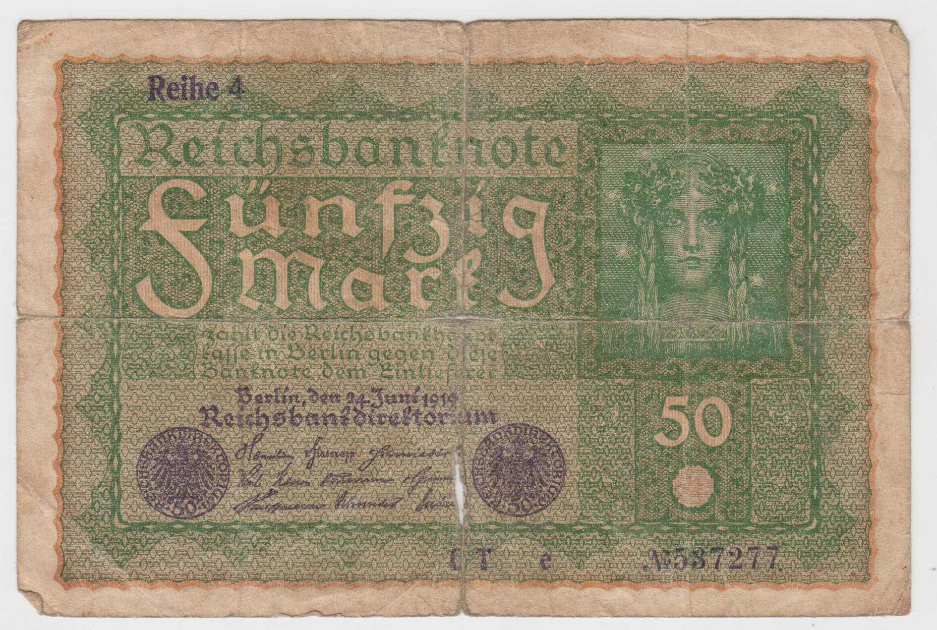 50 MARK 1919 NEMECKO N537277 STAV VID FOTO PRETRHNUTA