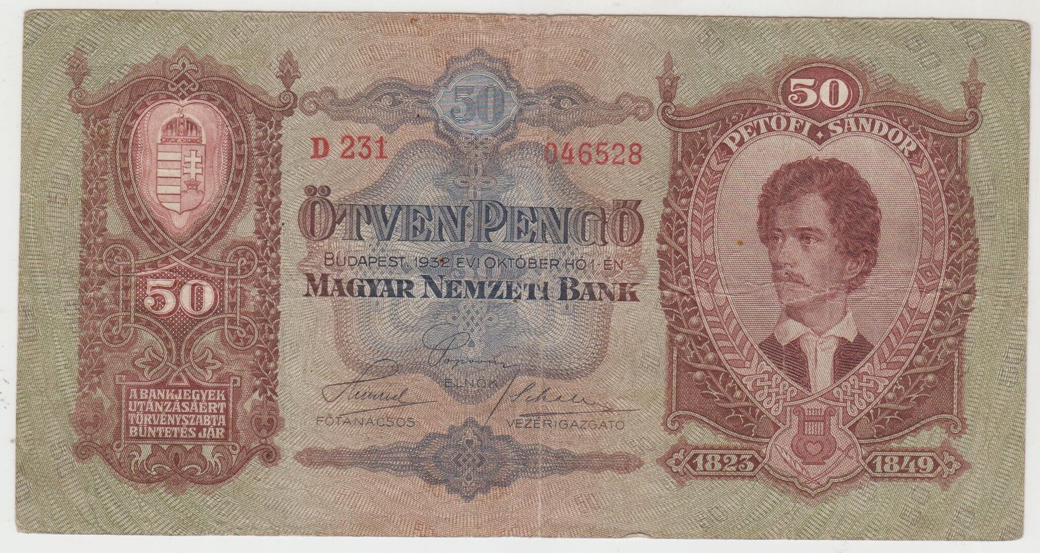 50 PENGO 1932 MADARSKO STAV VID FOTO