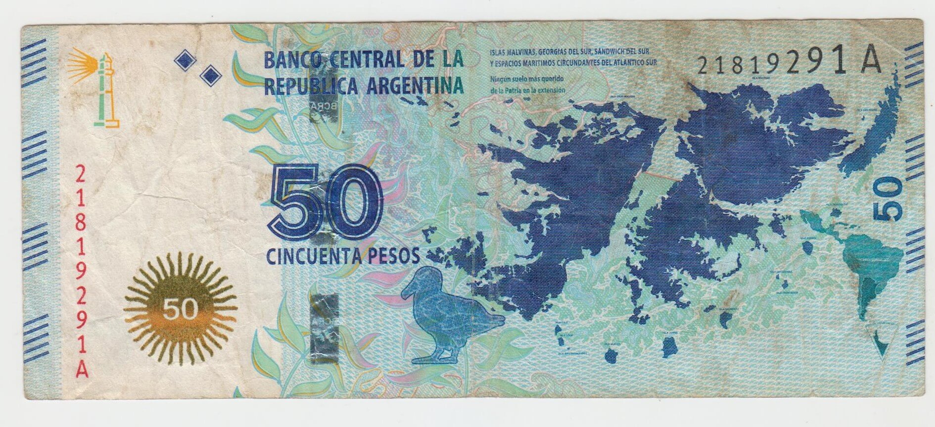 50 PESOS ARGENTINA 21819291A STAV VID FOTO
