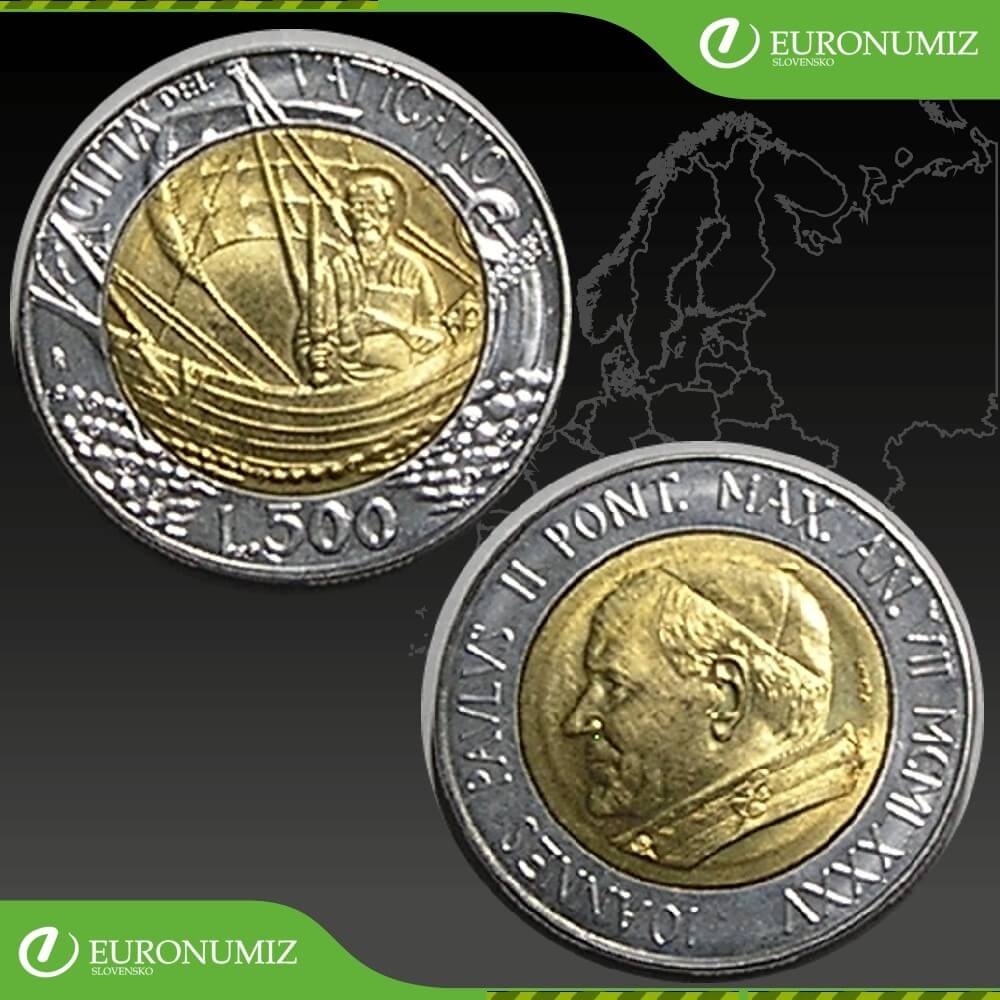 500 LIR 1985 VATIKAN JAN PAVOL II  APOSTOL PETER RYBAROM  STAV VID FOTO