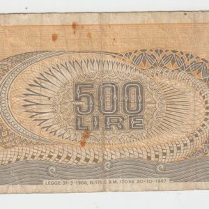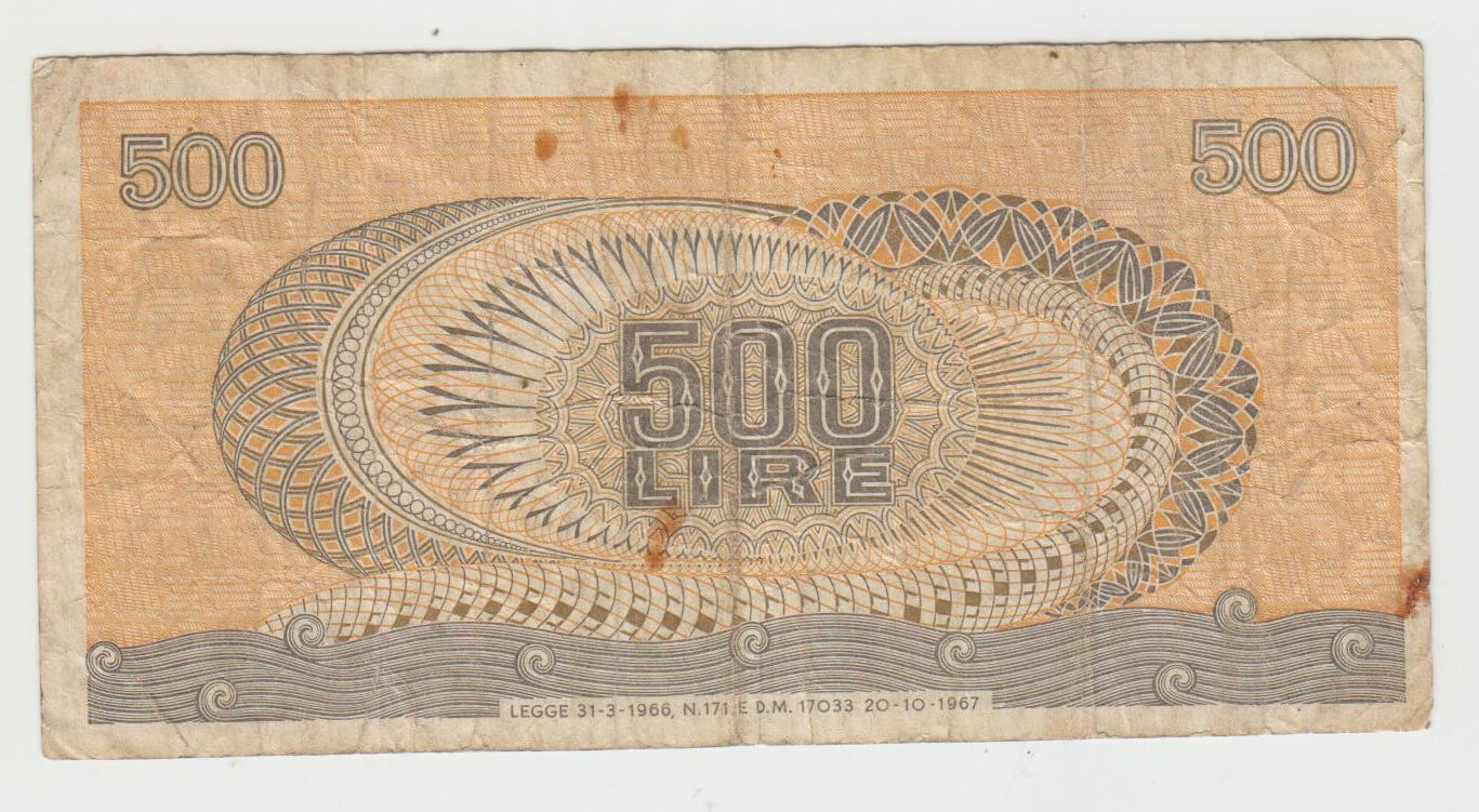 500 LIRE 1967 TALIANSKO I14 570686 STAV VID FOTO