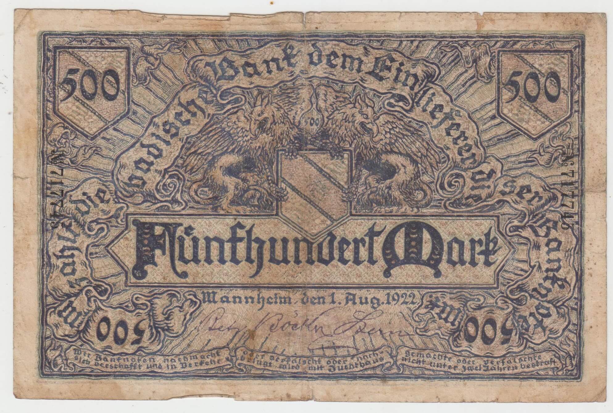 500 MARK 1922 NEMECKO