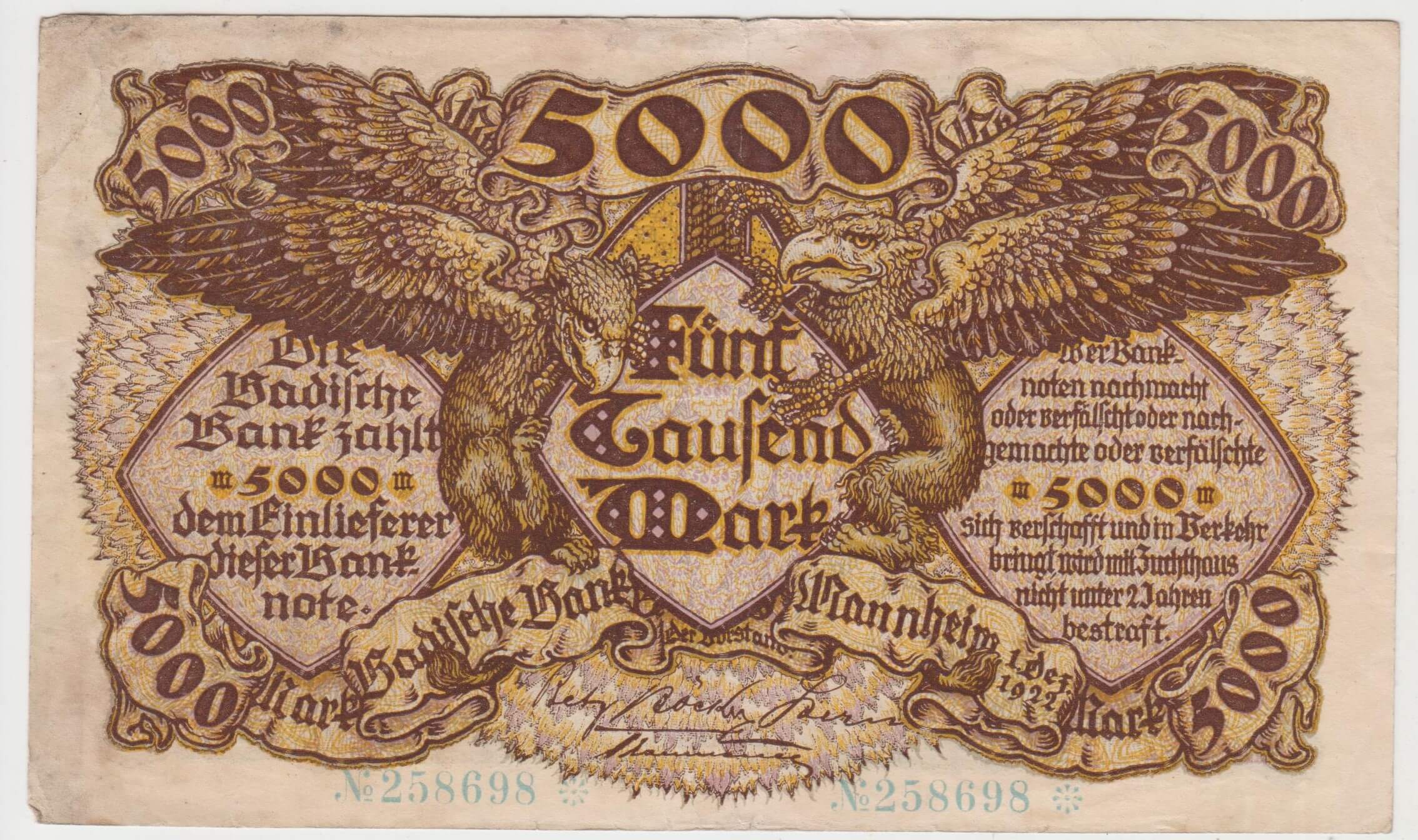 5000 MARK 1922 NEMECKO 258698 STAV VID FOTO