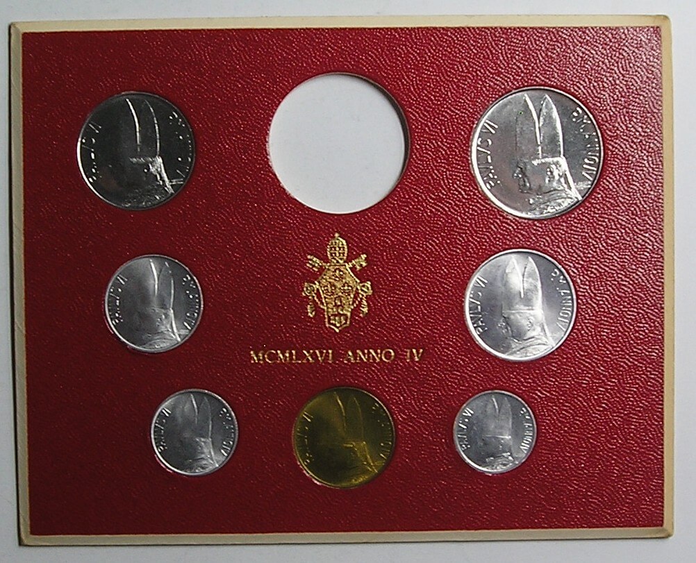 SADA 1966 VATIKAN PAVOL VI 1,2,5,10,20,50,100 LIR STAV VID FOTO