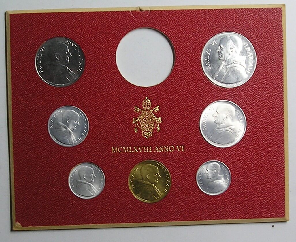 SADA 1968 VATIKAN PAVOL VI 1,2,5,10,20,50,100 LIR STAV VID FOTO