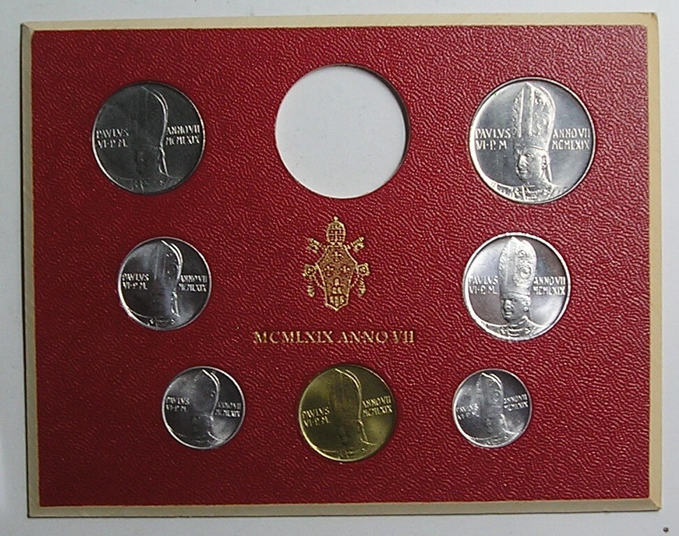 SADA 1969 VATIKAN PAVOL VI 1,2,5,10,20,50,100 LIR STAV VID FOTO