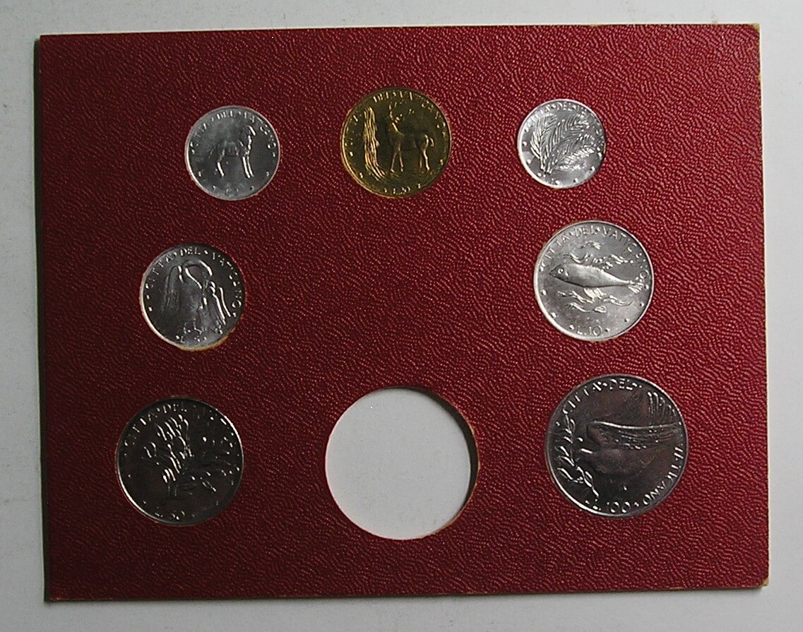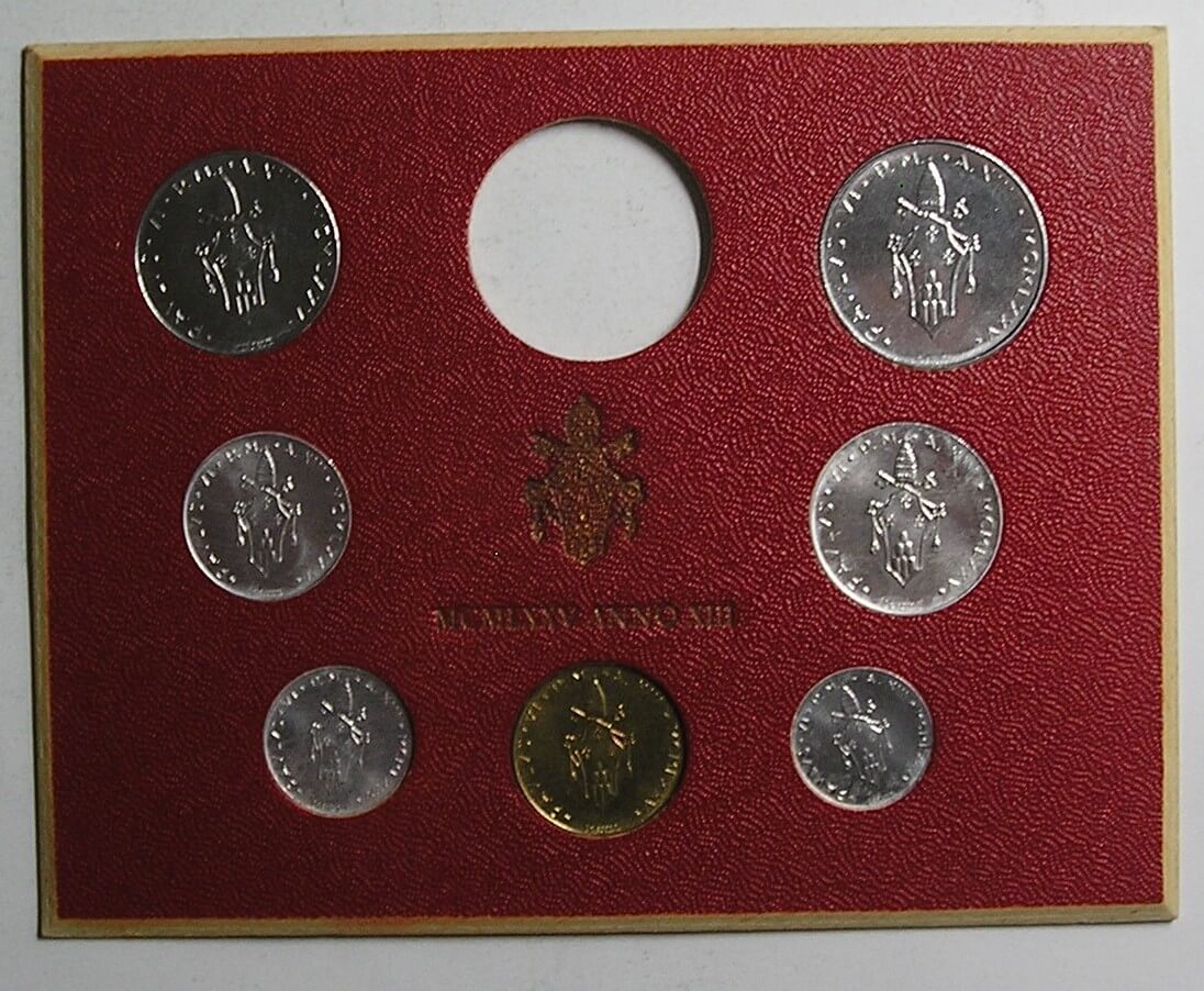 SADA 1975 VATIKAN PAVOL VI 1,2,5,10,20,50,100 LIR STAV VID FOTO