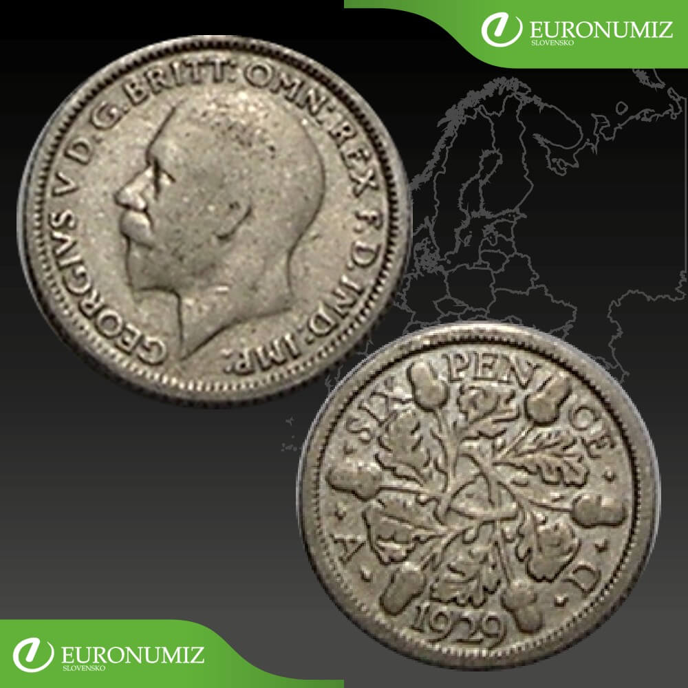 SIX PENCE 1929 VELKA BRITANIA STRIEBRO